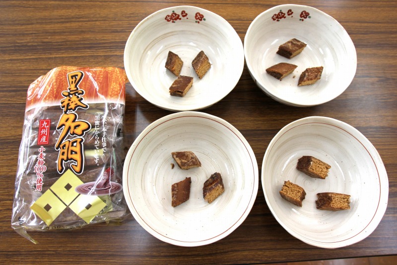 今日のお作法教室の和菓子は「黒棒」でした。インフルエンザ予防の為、お箸の所作は割愛しました。自分の番がきたら下座に向けて「お先に」と声をかけます。茶道は相手への心配りの気持ちを大切にします。
