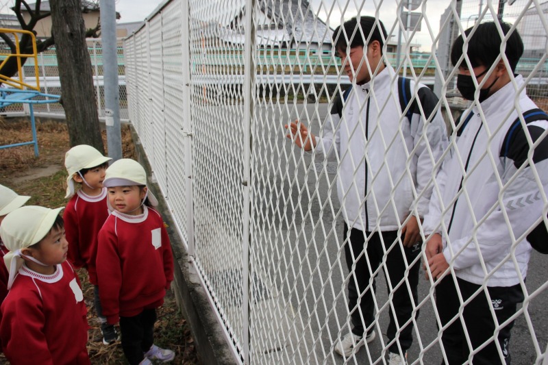卒園したお兄さんたちが近くを通ったのでご挨拶をしました。卒園児の丹羽くんはU15日本代表として2年連続選出され、台湾で開催された第12回BFA U-15アジア選手権で準優勝を果たし、野球界で大きく活躍されています。子どもたちから「お兄ちゃんがんばってね!」と声をかけられ、ニッコリ笑顔で答えてくれました。職員一同、丹羽君の今後のさらなるご活躍を応援しています!