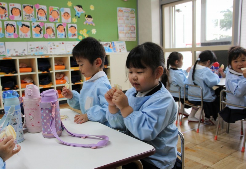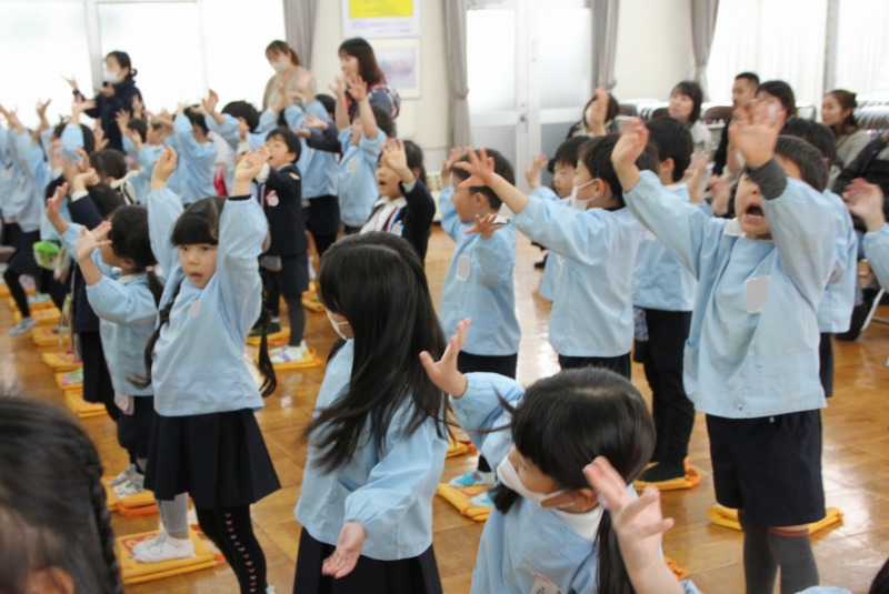 教室ではお母さんも一緒にお祝いしました。